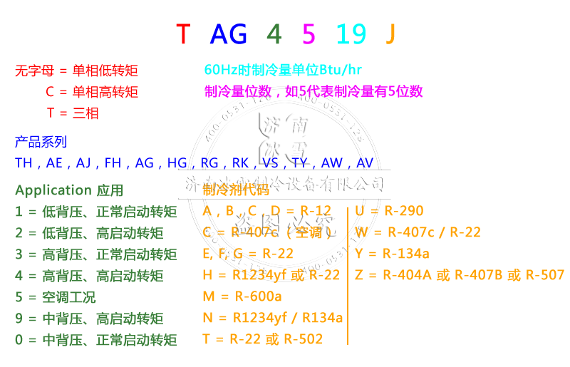 Tecumseh/泰康壓縮機命名規則: